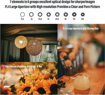 - 【Blur Effect& Miniature View】- This lens can cut the space and create the visual effect of Lilliputian or Miniature View. The blur effect produced by the F1.4 large aperture and the shift axis is better, and it explores the new way of photography game.In addition, it can be tilt and twisted,360° rotating and shifting axis can change the focal plane and achieve a variety of effect photos and video shooting with a very good blur effect,which is very simple but so interesting.